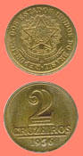 cruzeiros bronze-alumínio Anv: Escudo do Brasil - REPUBLICA DOS ESTADOS UNIDOS DO BRASIL. Rev: Valor 2 cruzeiros e data. 2 cruzeiros aluminium-brons Vz: Wapen van Brazilië - Republiek van de verenigde staten van Brazilië. Kz: Waarde 2 cruzeiros en jaartal. 2 cruzeiros aluminium-bronze Obv: Arms of Brazil - republic of the united states of Brazil. Rev: Value 2 cruzeiros and date. |