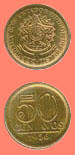 centavos bronze-alumínio Anv: Escudo do Brasil - REPUBLICA DOS ESTADOS UNIDOS DO BRASIL. Rev: Valor 50 centavos e a data. 50 centavos aluminium-brons Vz: Wapen van Brazilië - Republiek van de verenigde staten van Brazilië. Kz: Waarde 50 centavos en jaartal. 50 centavos aluminium-bronze Obv: Arms of Brazil - republic of the united states of Brazil. Rev: Value 50 centavos and the date. |